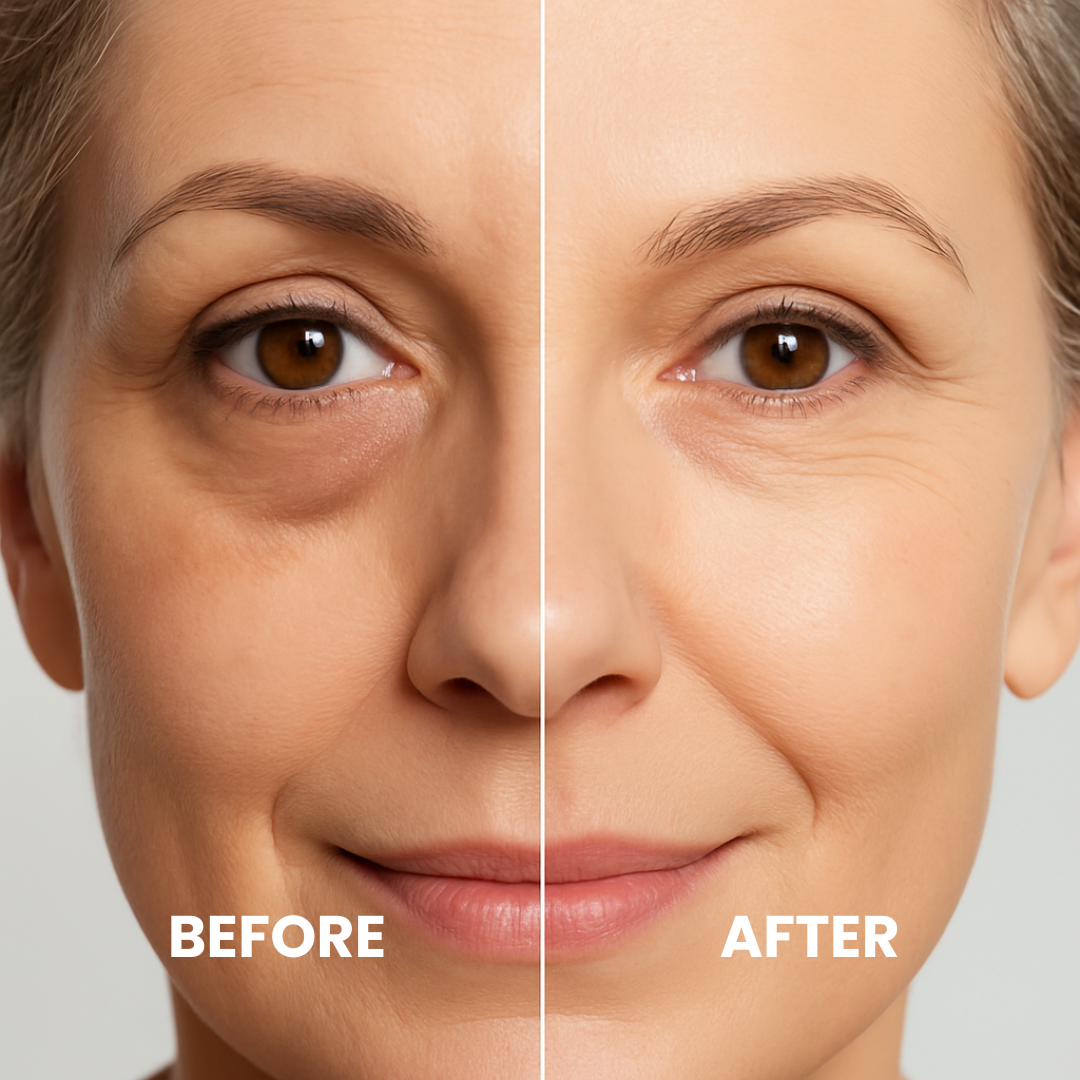 You’ll see visible results within minutes — puffiness and eyebags look reduced. With daily use, skin stays hydrated, smoother, and firmer.